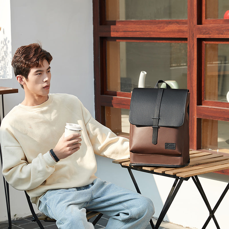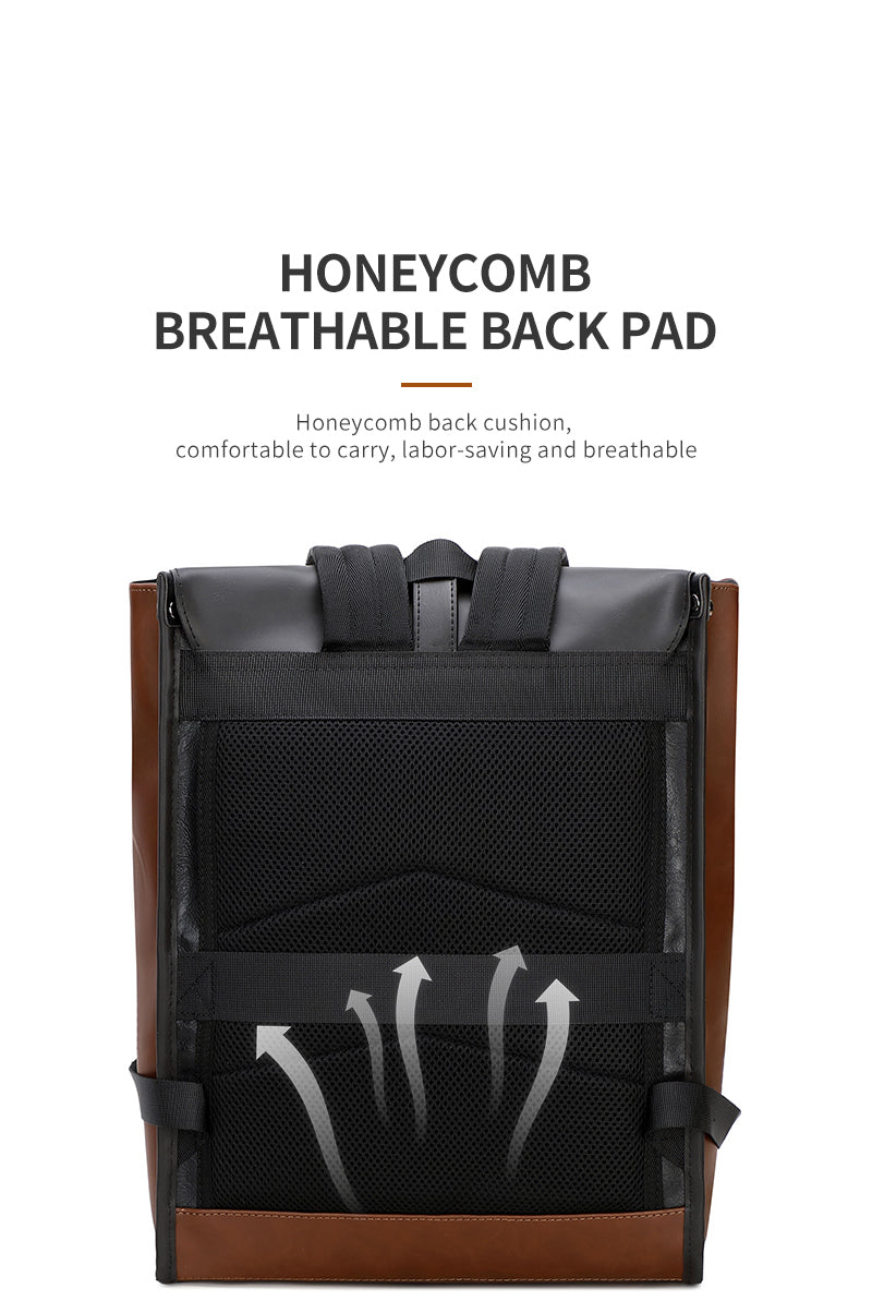 GLD117 Front Flap Leather Waterproof Multi-Pocket Travel Bag Backpack