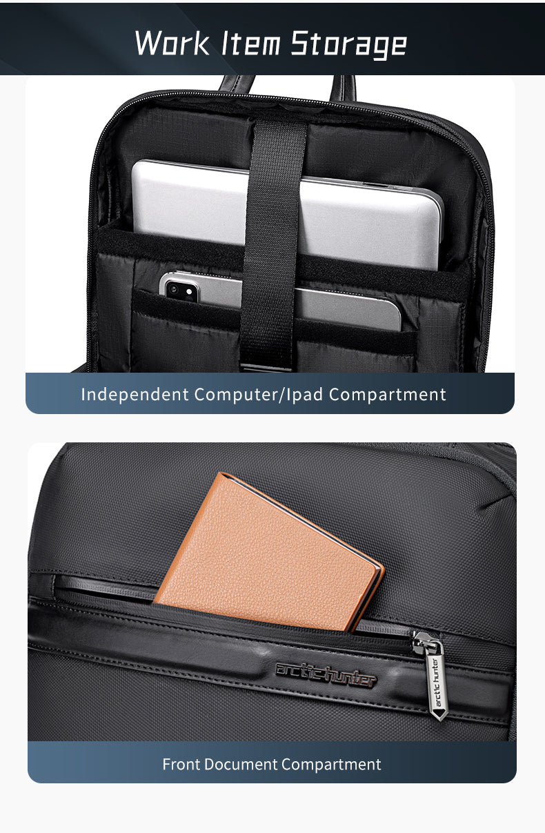 حقيبة ظهر لابتوب آركتيك هانتر B00872 - تصميم احترافي نحيف 15.6 بوصة، مقاومة للماء، حقيبة عمل يومية للسفر، مع حزام تثبيت للأمتعة (Luggage Strap).