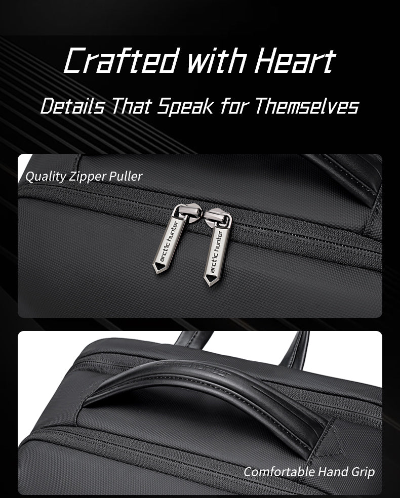 • مساحة تخزين منظمة: بالرغم من تصميمها النحيف، توفر الحقيبة حجرات وجيوب داخلية متعددة لتنظيم مثالي للمستلزمات الصغيرة، الأقلام، الهاتف، والكابلات.