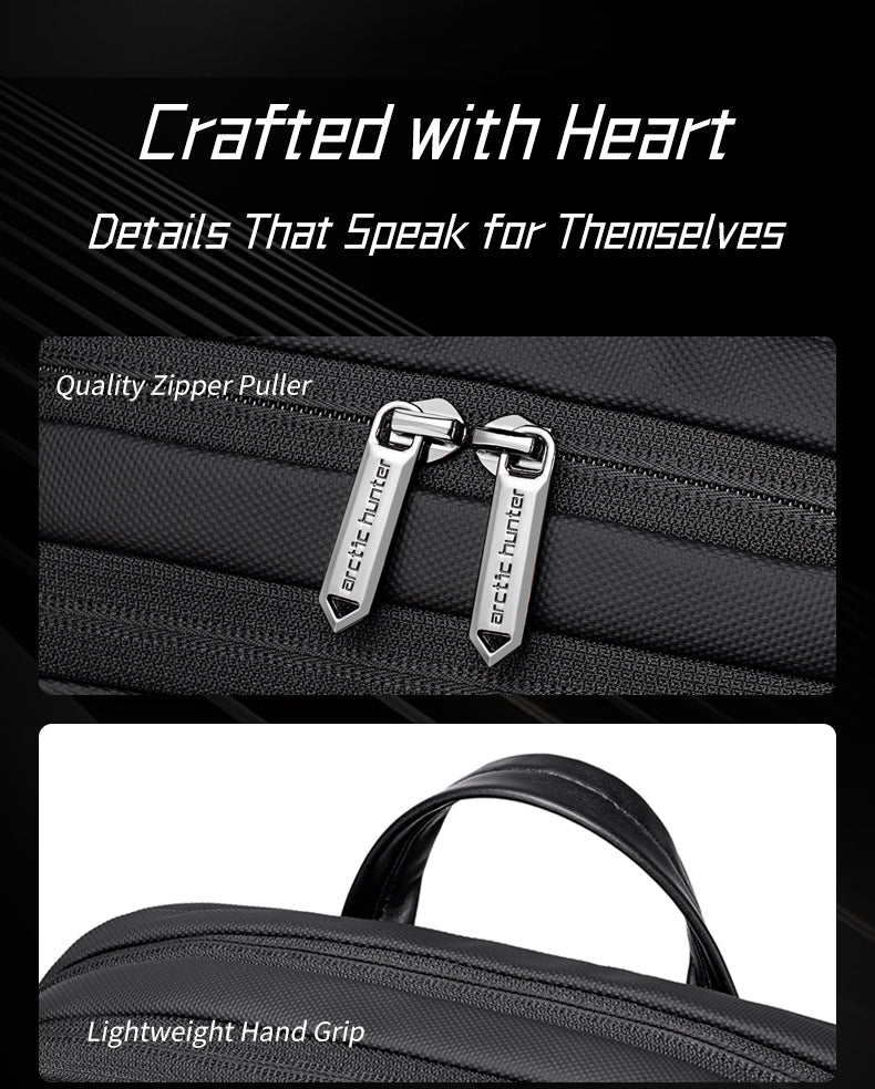 - هيكل مريح ومقاوم للسرقة: تصميم نحيف يلتصق بالظهر، مع نظام تهوية (Airflow) في البطانة الخلفية لراحة قصوى. كما أن السحّابات والمقصورات الرئيسية مصممة لتقليل خطر السرقة في الأماكن المزدحمة.